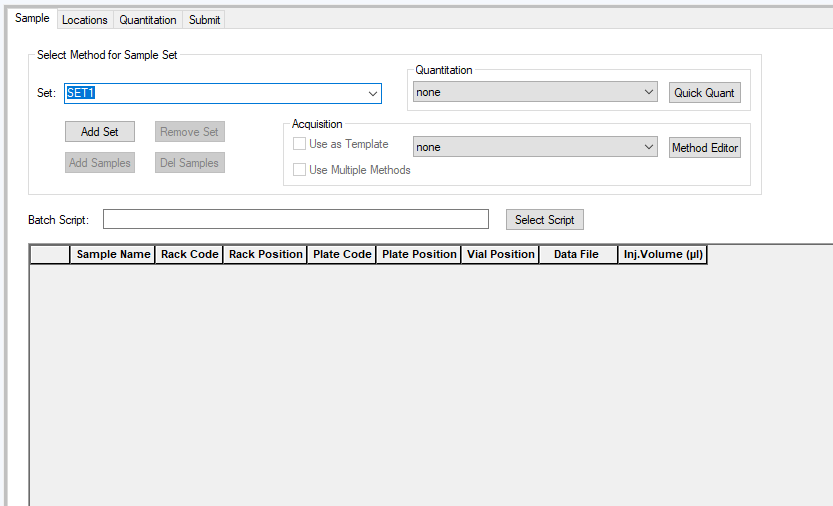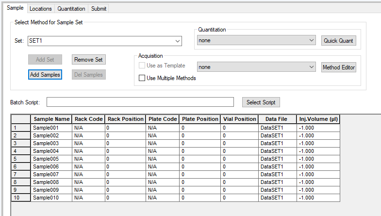 如果勾选了 Use Multiple Methods,批文件表中会出多出一列 Acquisition Method,可以为样品单独设置采集方法。