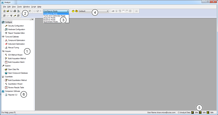 - 双击 Analyst Software 图标打开控制软件,Analyst 软件默认布局如下图所示: