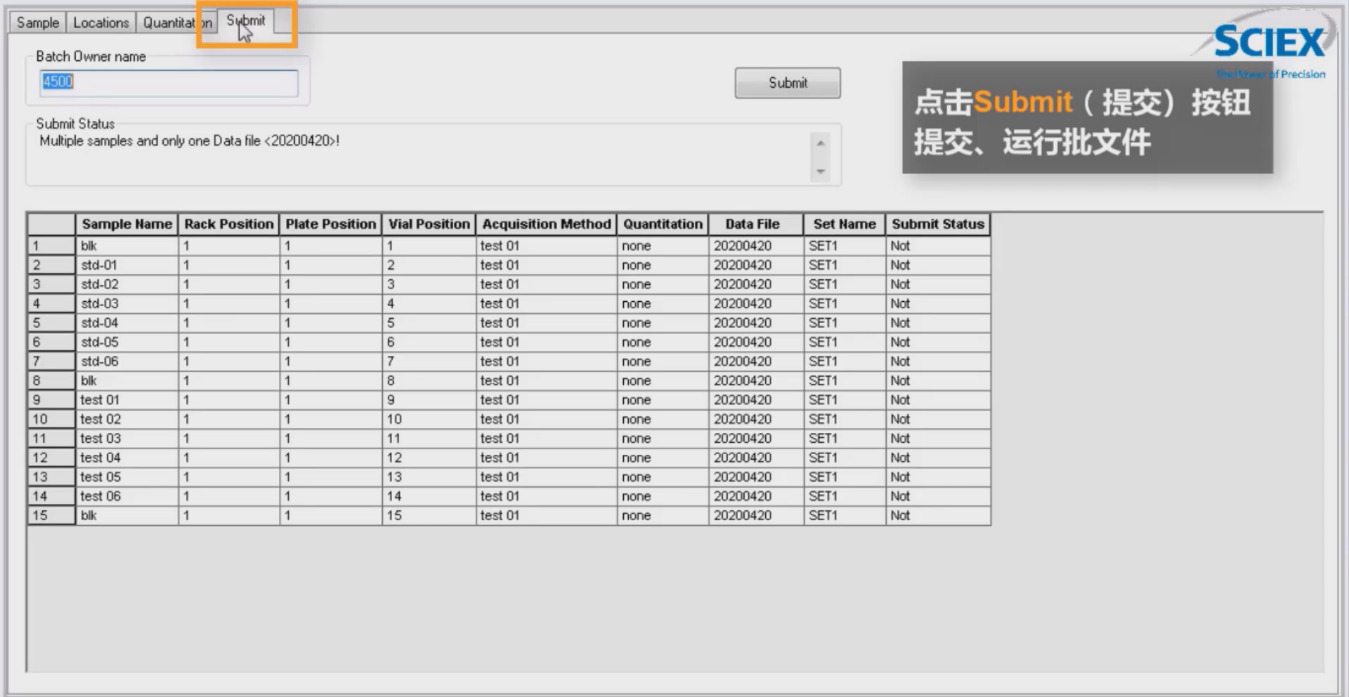 - 提交批处理表:切换到 Submit 标签,点击提交。