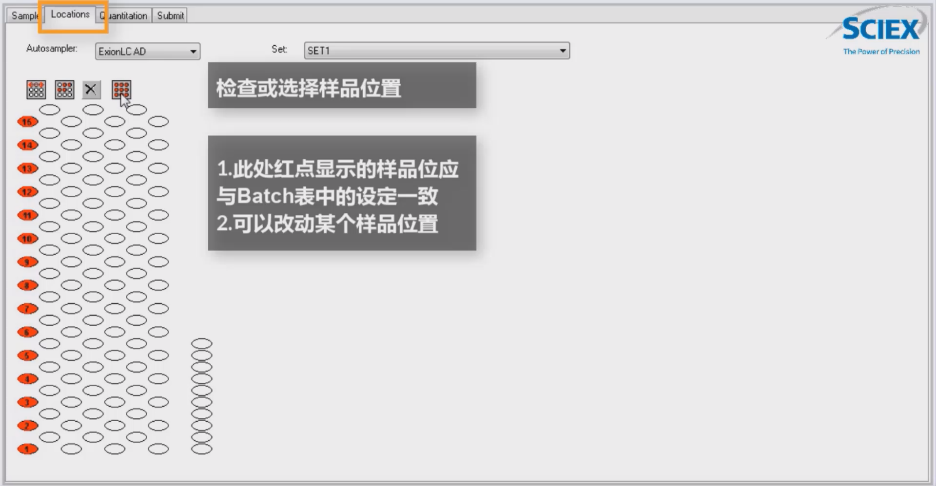 (可选)在 Locations 选项卡可以查看和编辑进样瓶位置。