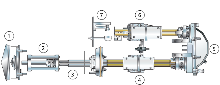 | 6 | 用来在水平轴线上对探针进行定位的千分尺,以调节离子源的灵敏度 | 玻璃 |